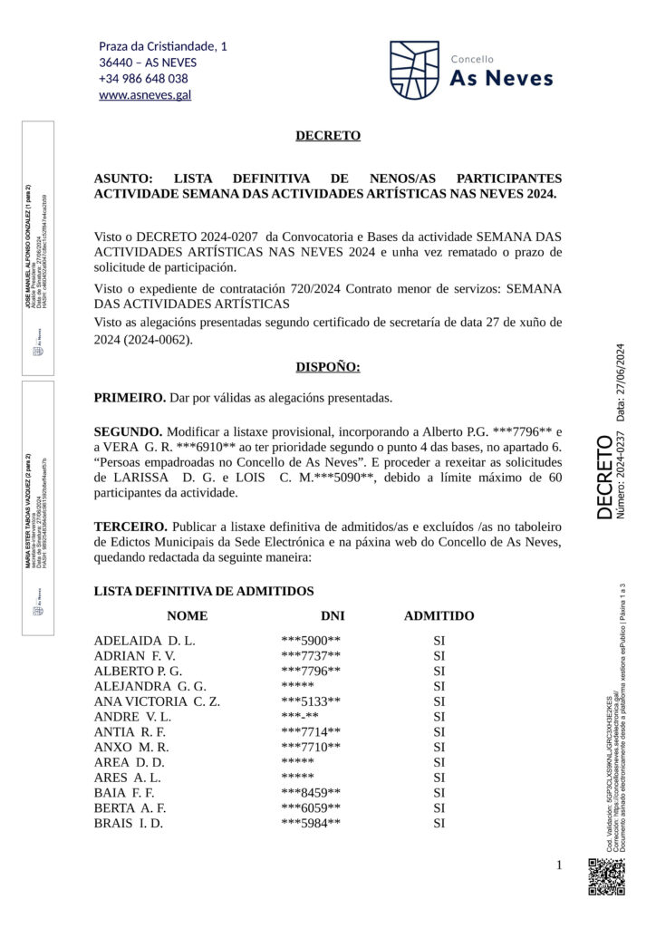 ABERTO, DENDE MAÑÁ, O PRAZO DE RESERVA PARA A «SEMANA DAS ACTIVIDADES ARTÍSTICAS DE AS NEVES»Dende mañá, sábado 15, e