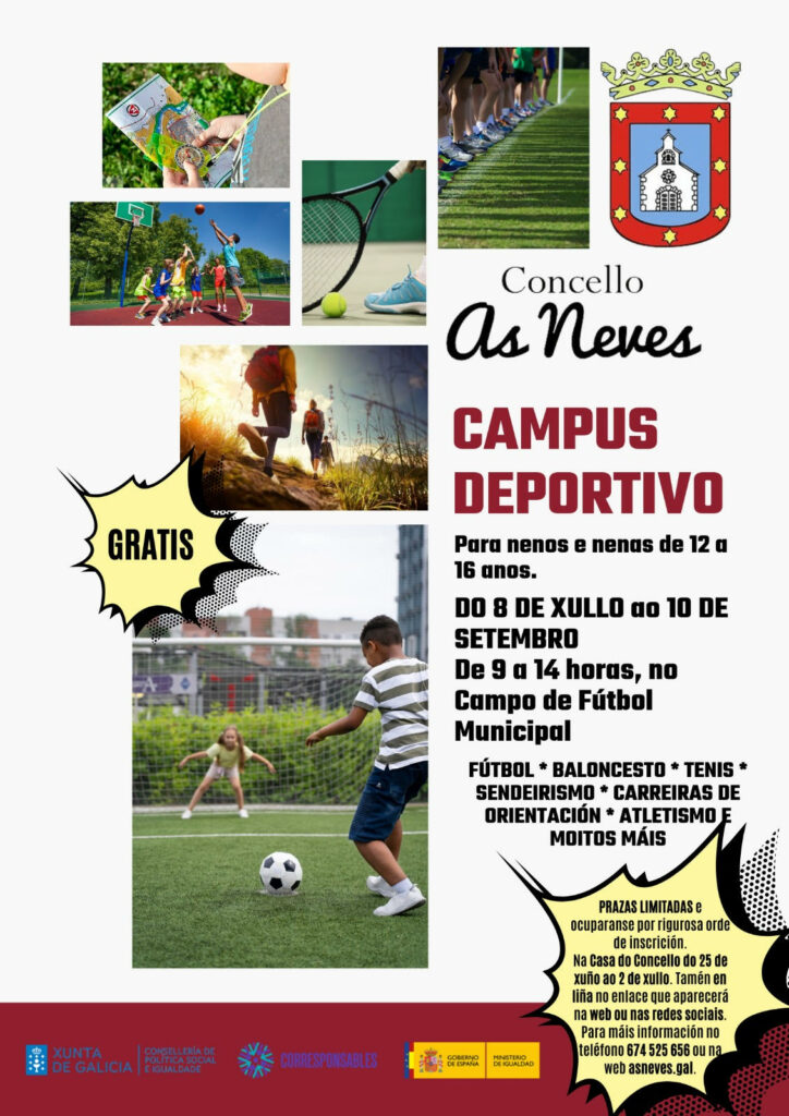 O Concello das Neves colabora de xeito estreito con clubes e asociacións para o desenvolvemento de actividades e eventos deportivos. Apóstase pola continuidade de modalidades existentes e mais tamén búscase o pulo de novas alternativas. As instalacións repártense entre o centro urbano e as parroquias, incluíndo as sendas para facer sendeirismo. Semanalmente actualizamos a información dos clubs deportivos das Neves.