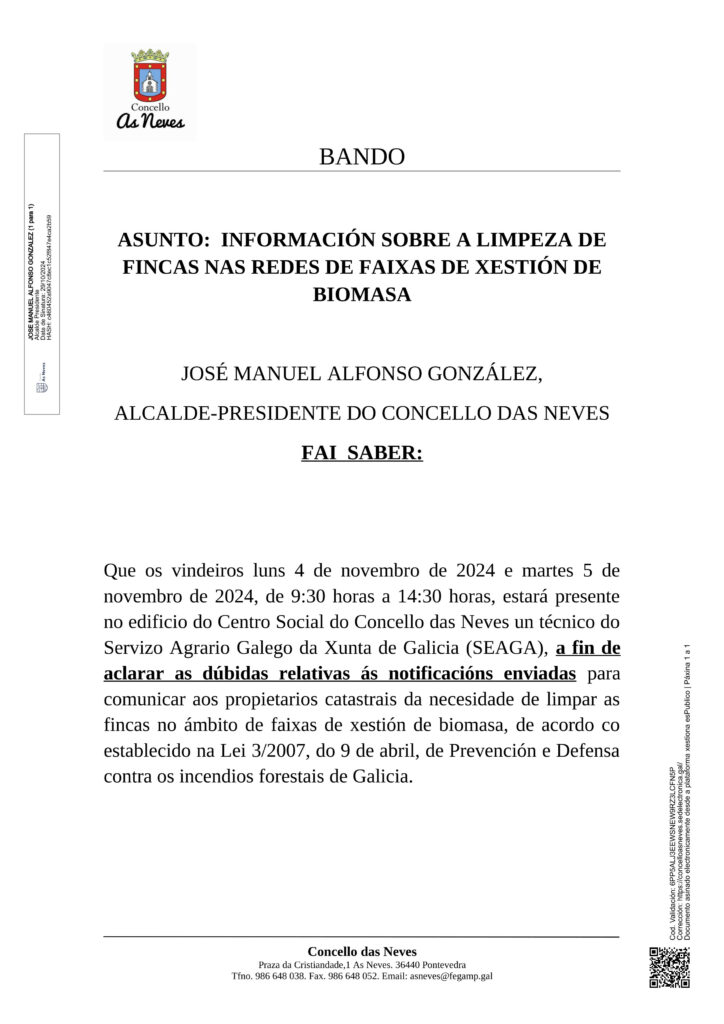 O Concello das Neves ten concedida unha subvención da Consellería de Medio Ambiente, Territorio e Vivenda ao abeiro da Orde