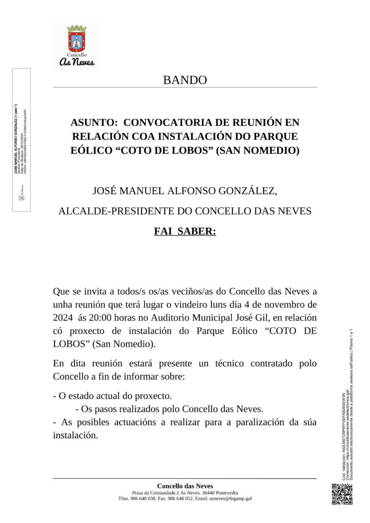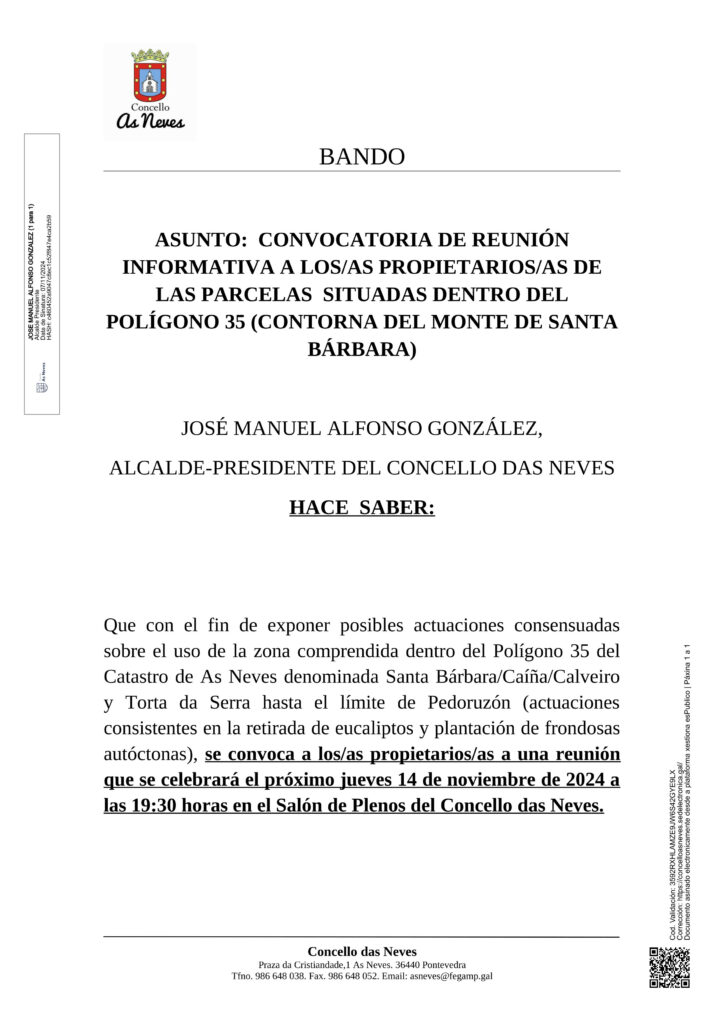 El Ayuntamiento de As Neves tiene concedida una subvención del Ministerrio de Industria, Comercio y Comercio, actual Ministerio de Economía,